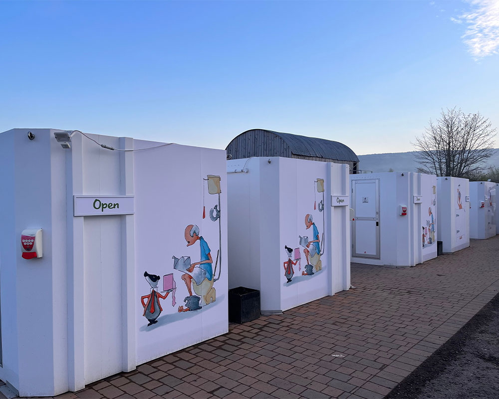 Main toilet and shower block with step-free entrance.
